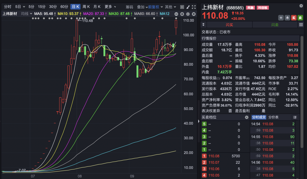 资料显示,智元恒岳是由智元机器人关联公司上海智元新创技术有限公司及其核心团队共同出资设立的持股平台。截至9月24日收盘速牛配资,上纬新材“20CM”涨停,报110.08元/股,为此次要约收购价的14倍。