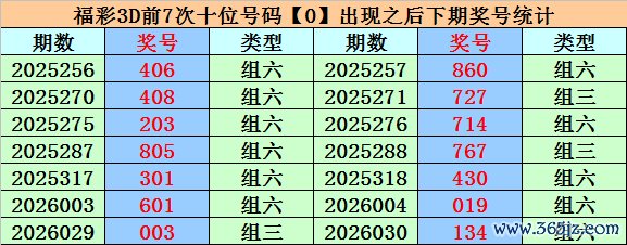 在十位开奖中,号码0前7次出现之后,下期奖号分别为:6、2、1、6、3、1、3,其中奖号奇偶比为4:3,大小比为2:5,012路比为4:2:1。