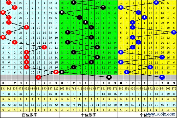百位分析:百位上期开出号码9,历史上该位号码9出现了822次,最近100期号码9出现次,上期间隔16期再次出现。